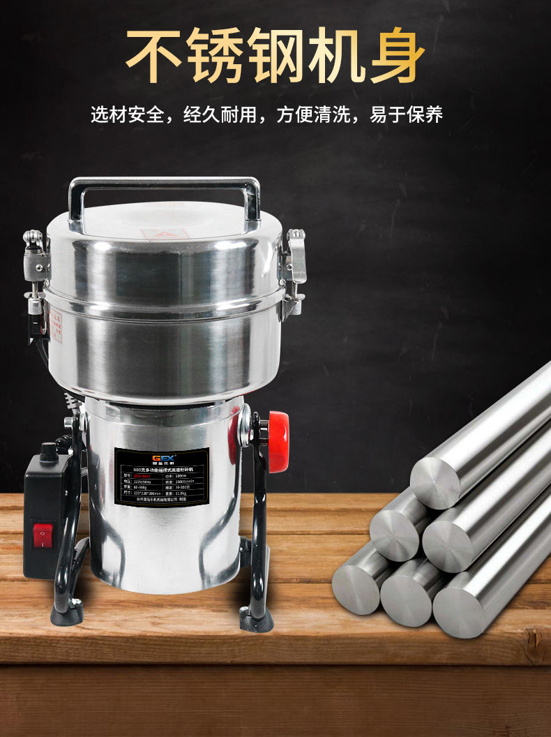 国品乐机 GPM-3500五谷杂粮磨粉机 不锈钢机身高效打粉机三七研磨