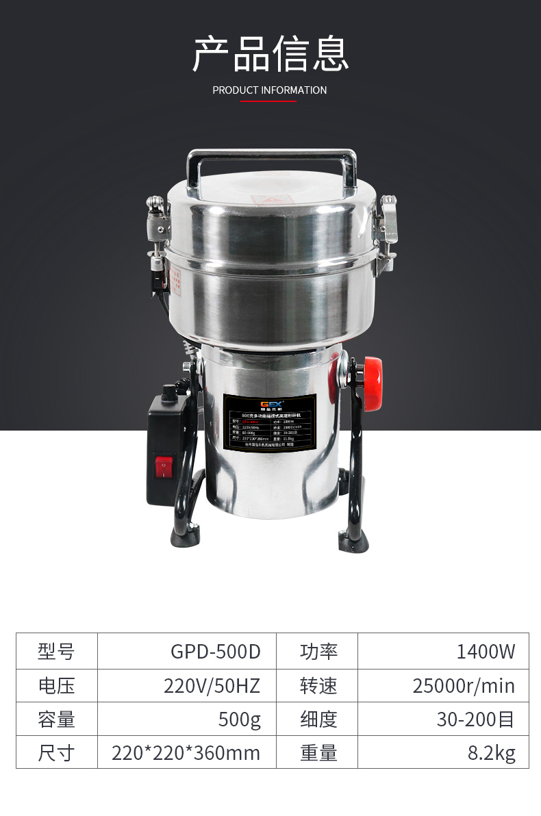 国品乐机 小型高速粉碎机 GPD-500D磨粉机