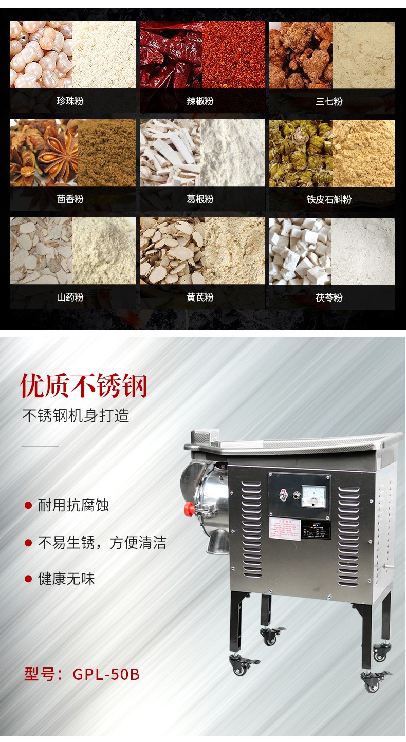 国品乐机 GPM-3500五谷杂粮磨粉机 不锈钢机身高效打粉机三七研磨